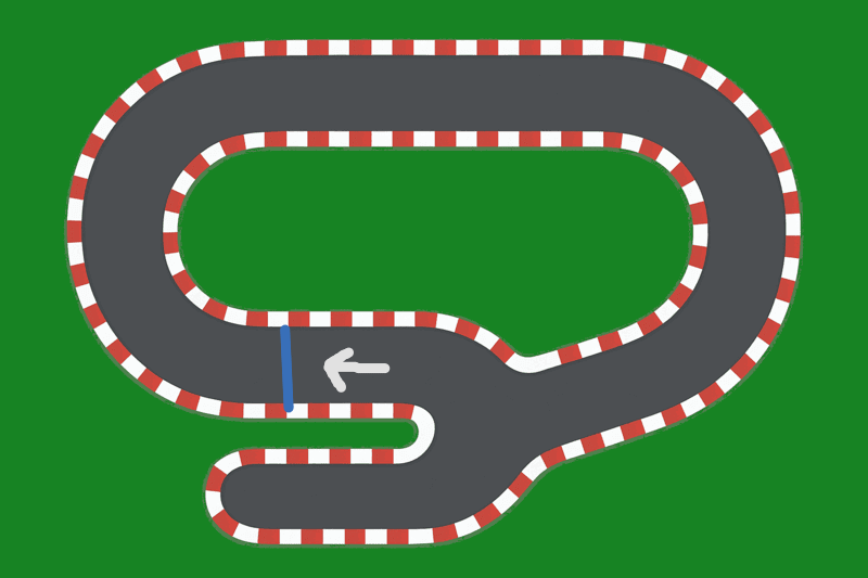 You can use collision detection with a background image combined with this simple 800x533px racetrack image.